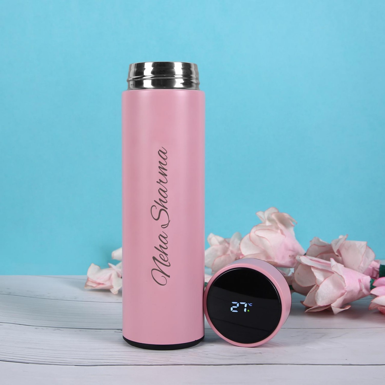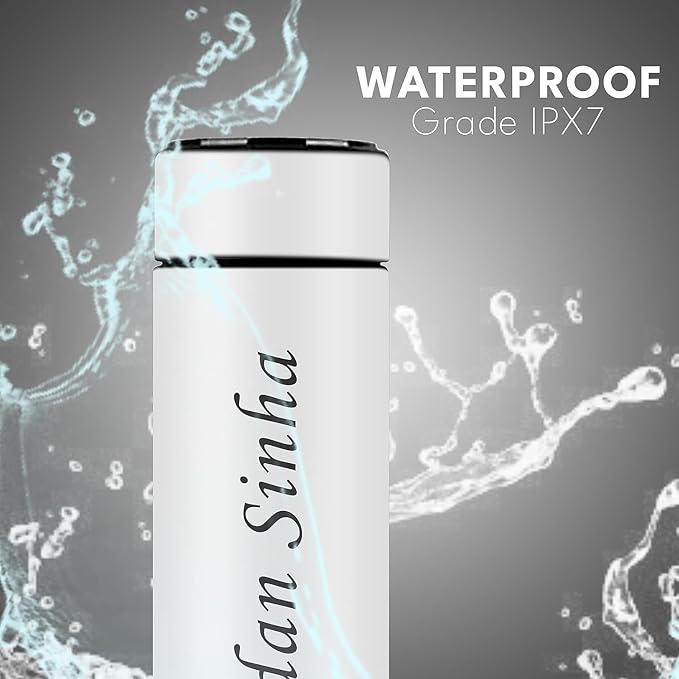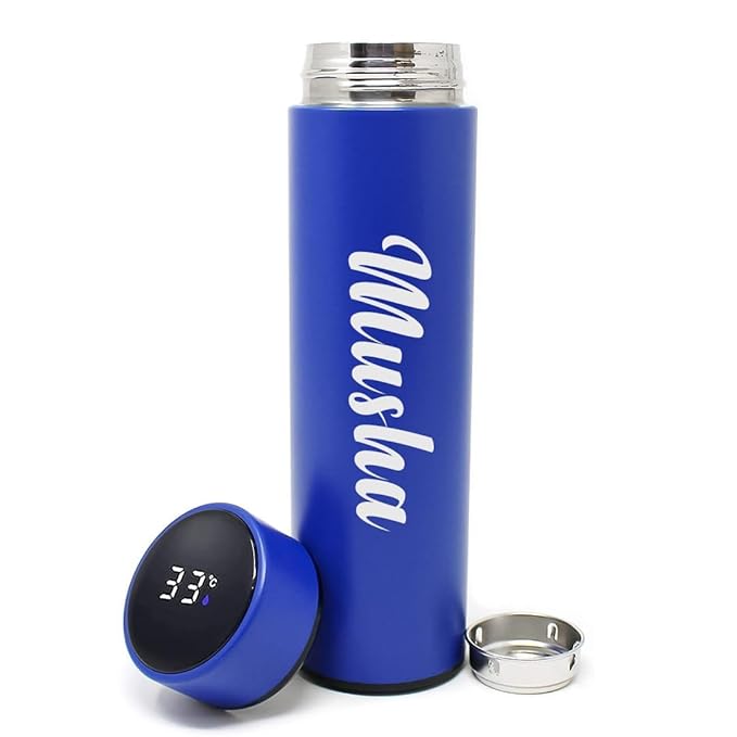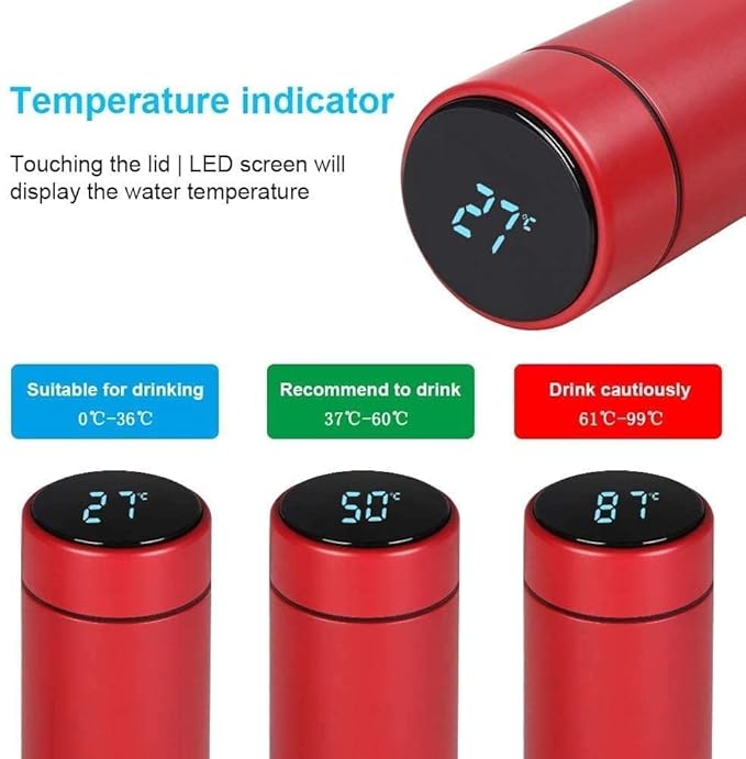 Touch-LED bottle for instant temperature check, stylish and safe.