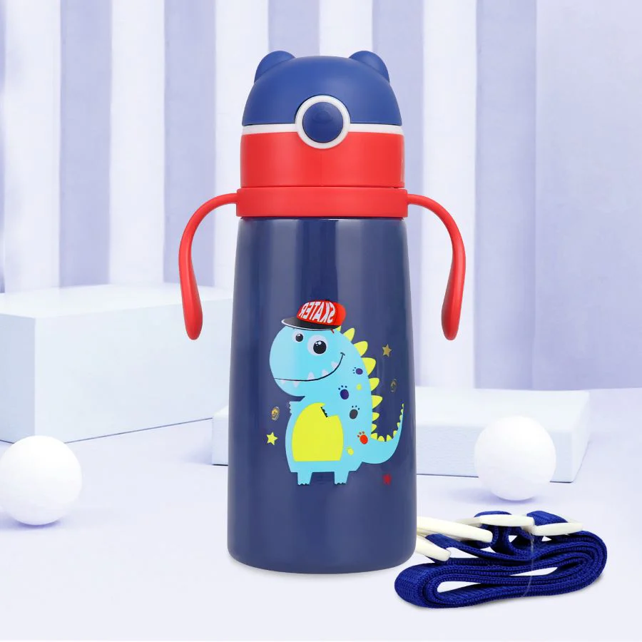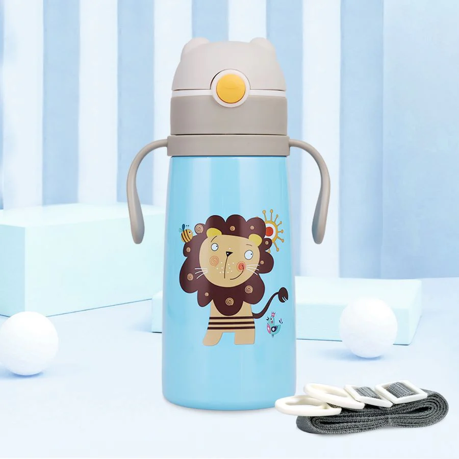 Personalized Kids Water Bottle with cute animal prints and leak-proof flip lid.